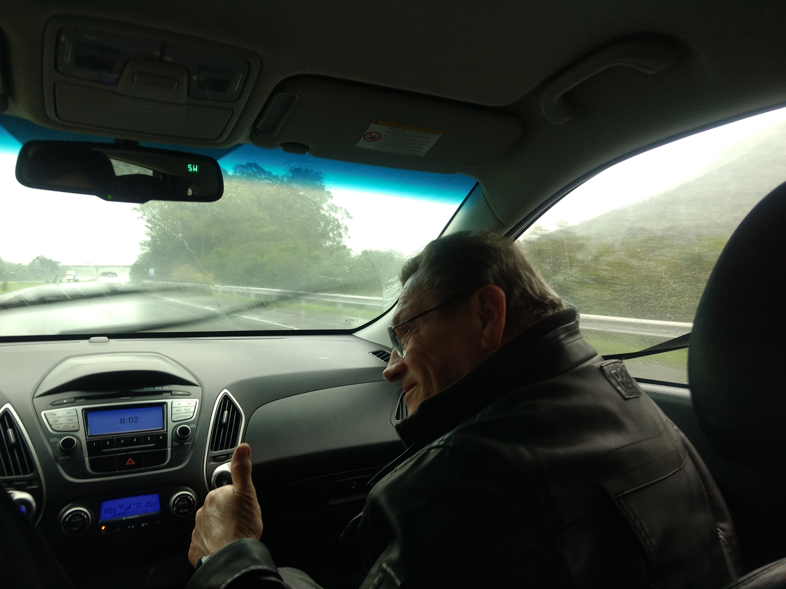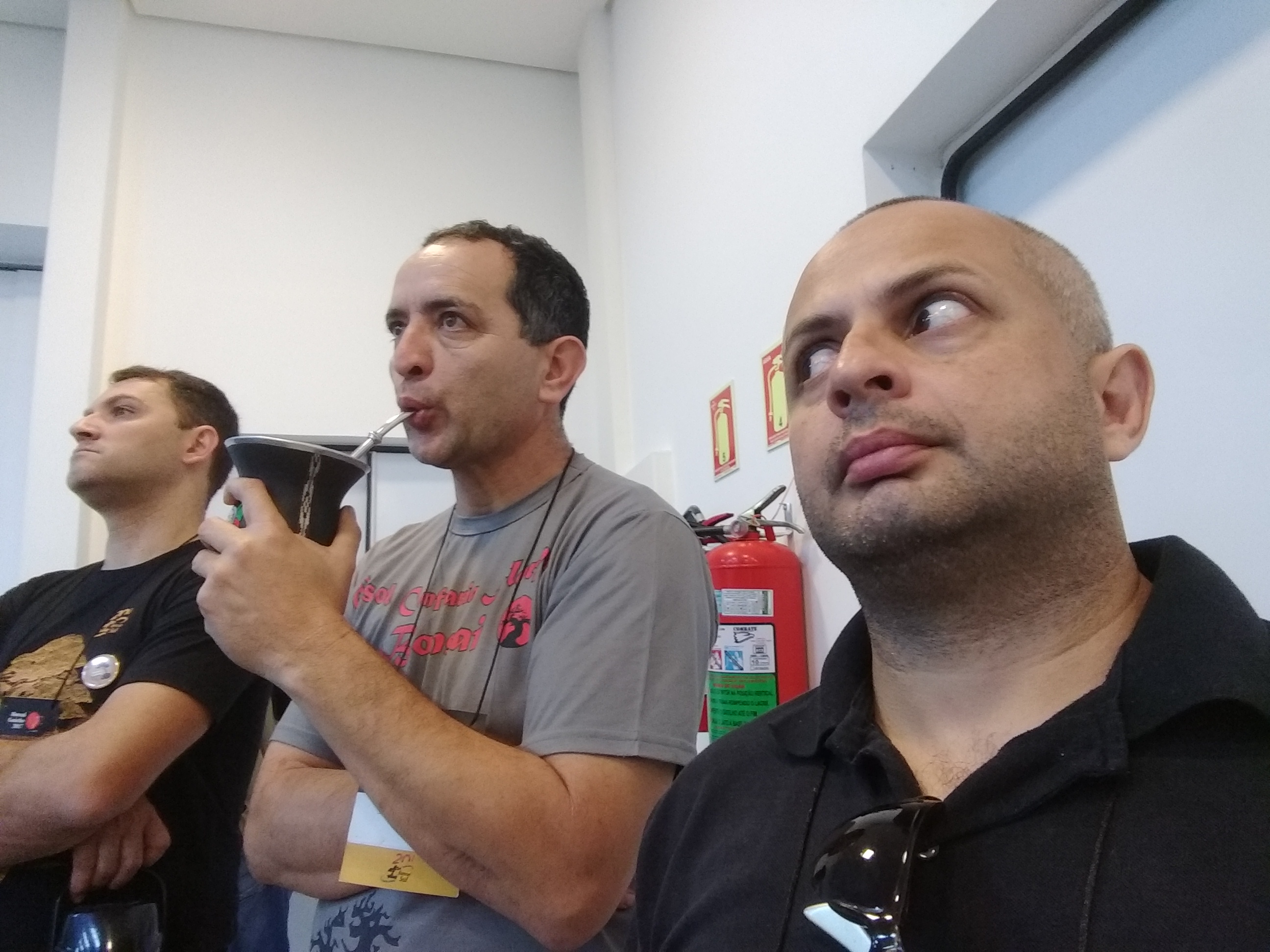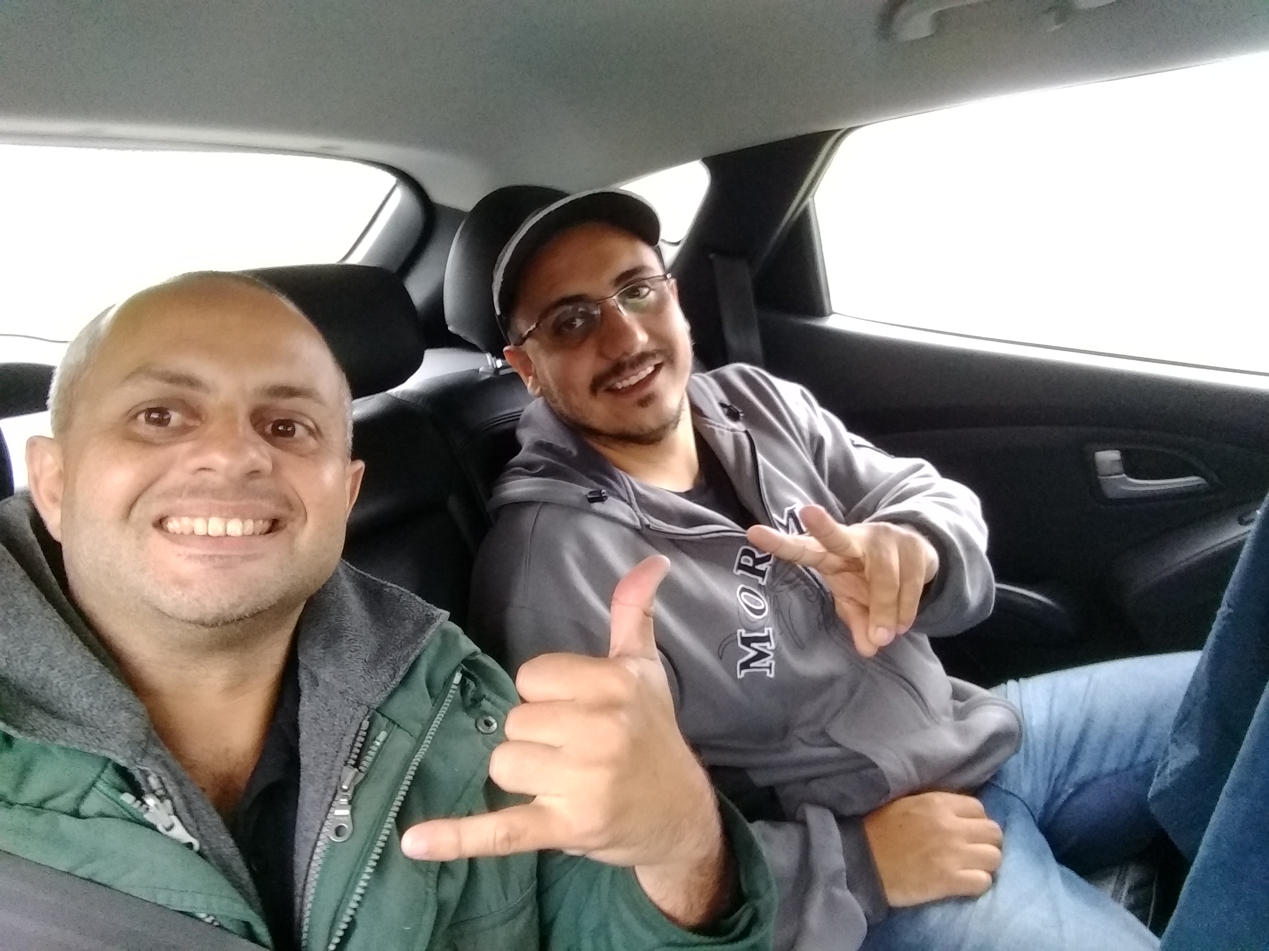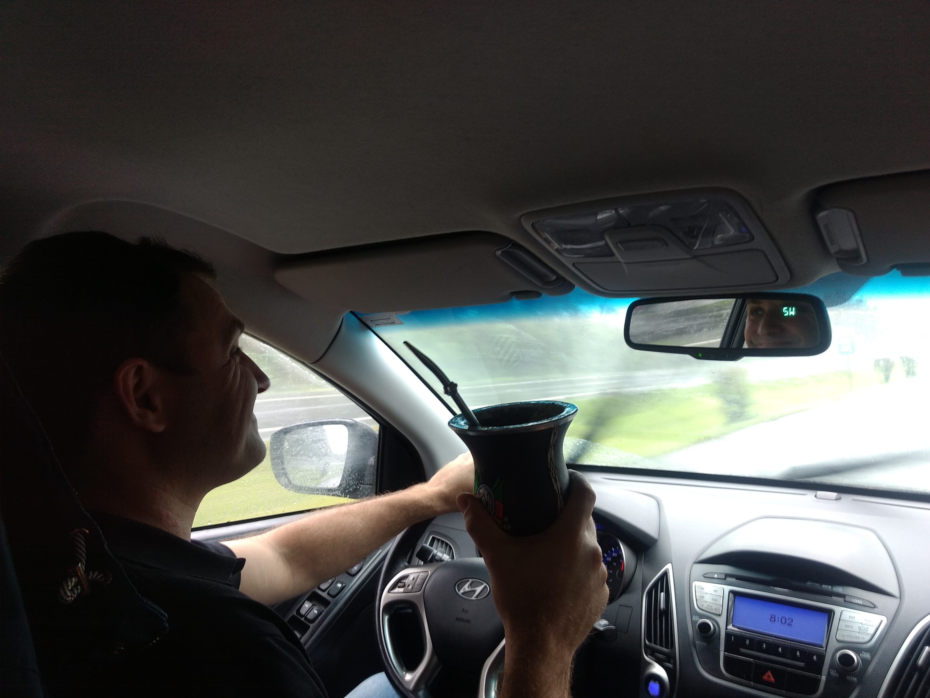 Nem vou comentar aqui que o Tiago passou num buraco e eu quase derrubei o chimarrão todo em cima da minha jaqueta, mas ainda bem que a maioria caiu no carro dele! sorte.