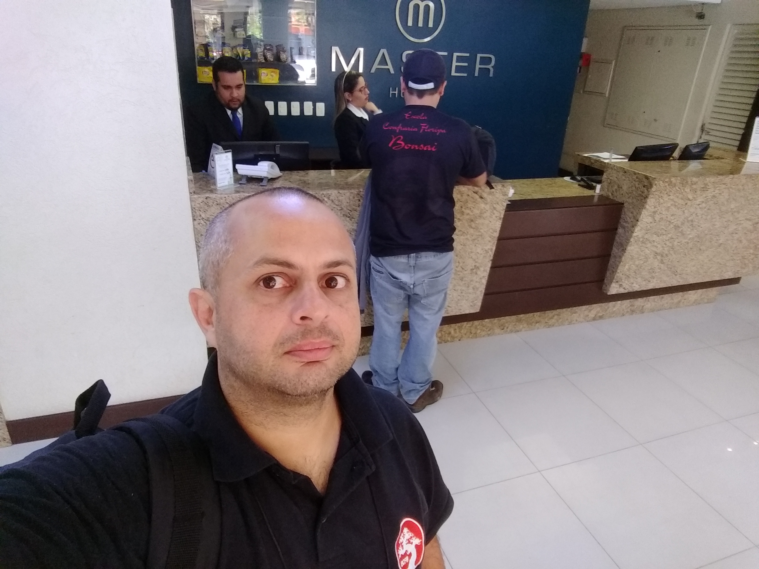 Já fazendo o check-out no hotel.