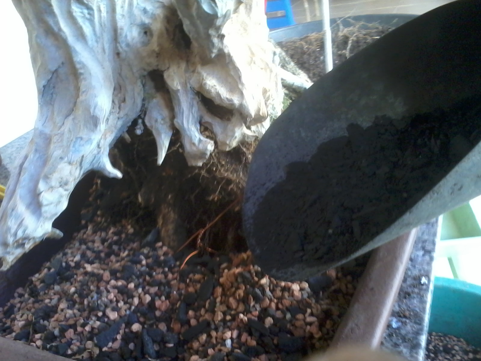Nesse momento fiz o transplante para outro vaso de treino, mas o substrato foi renovado, o que antes era areia para recuperação da coleta, agora foi uma mescla que sempre uso para bonsai, caco cerâmico, terra vegetal e areião de rio.