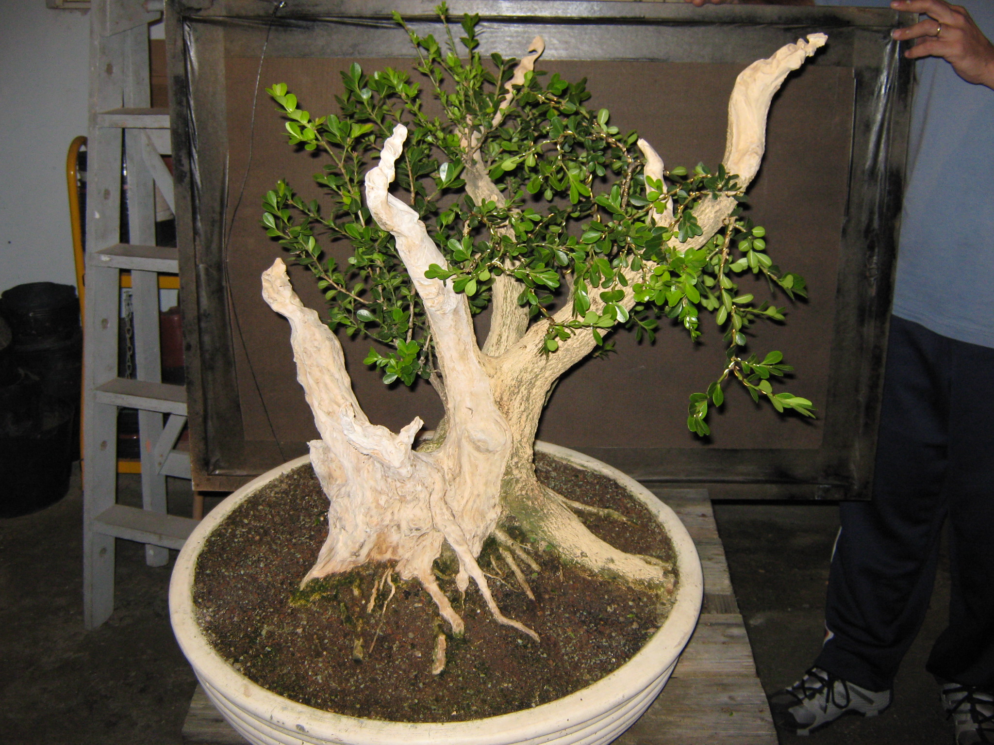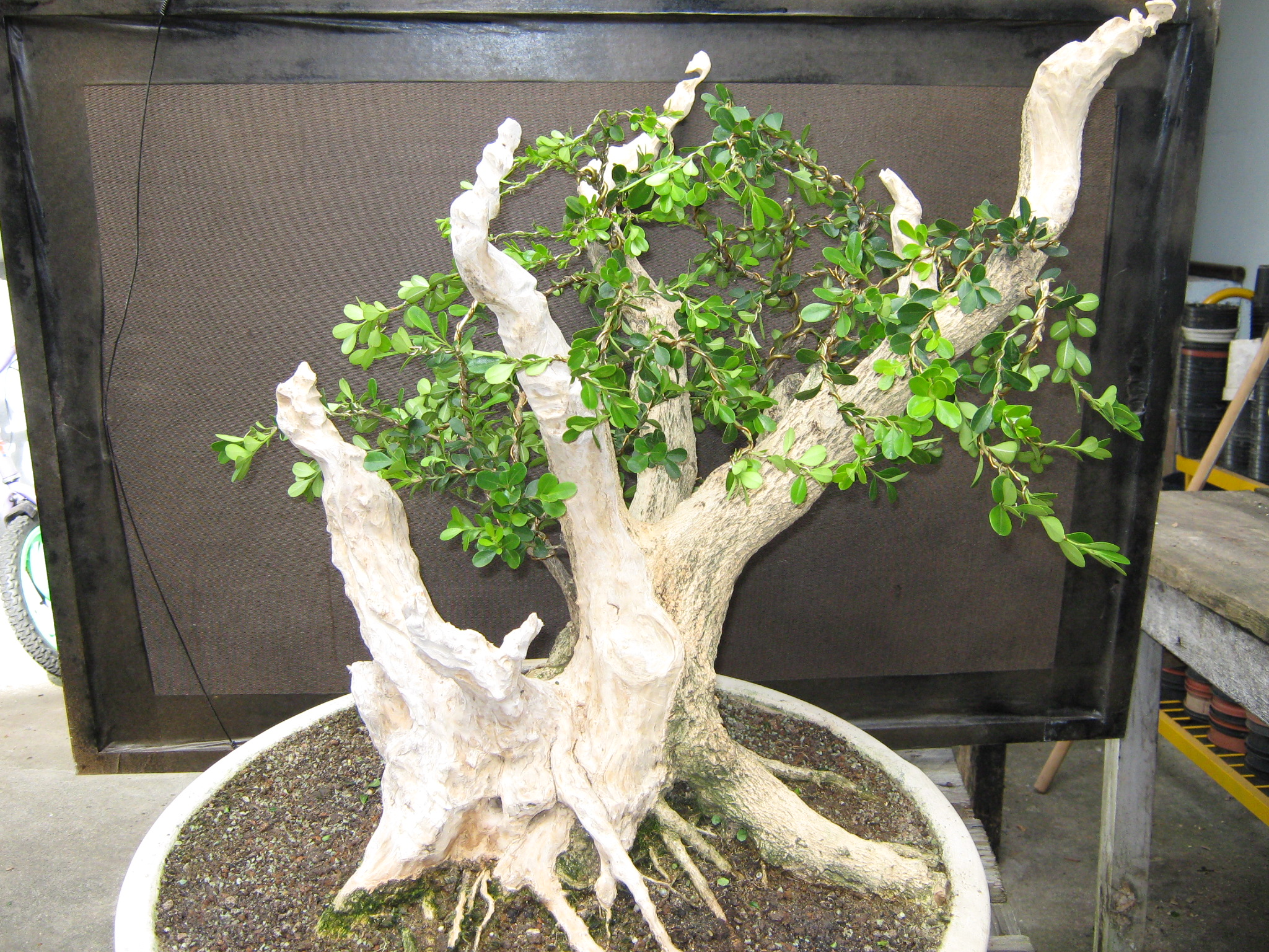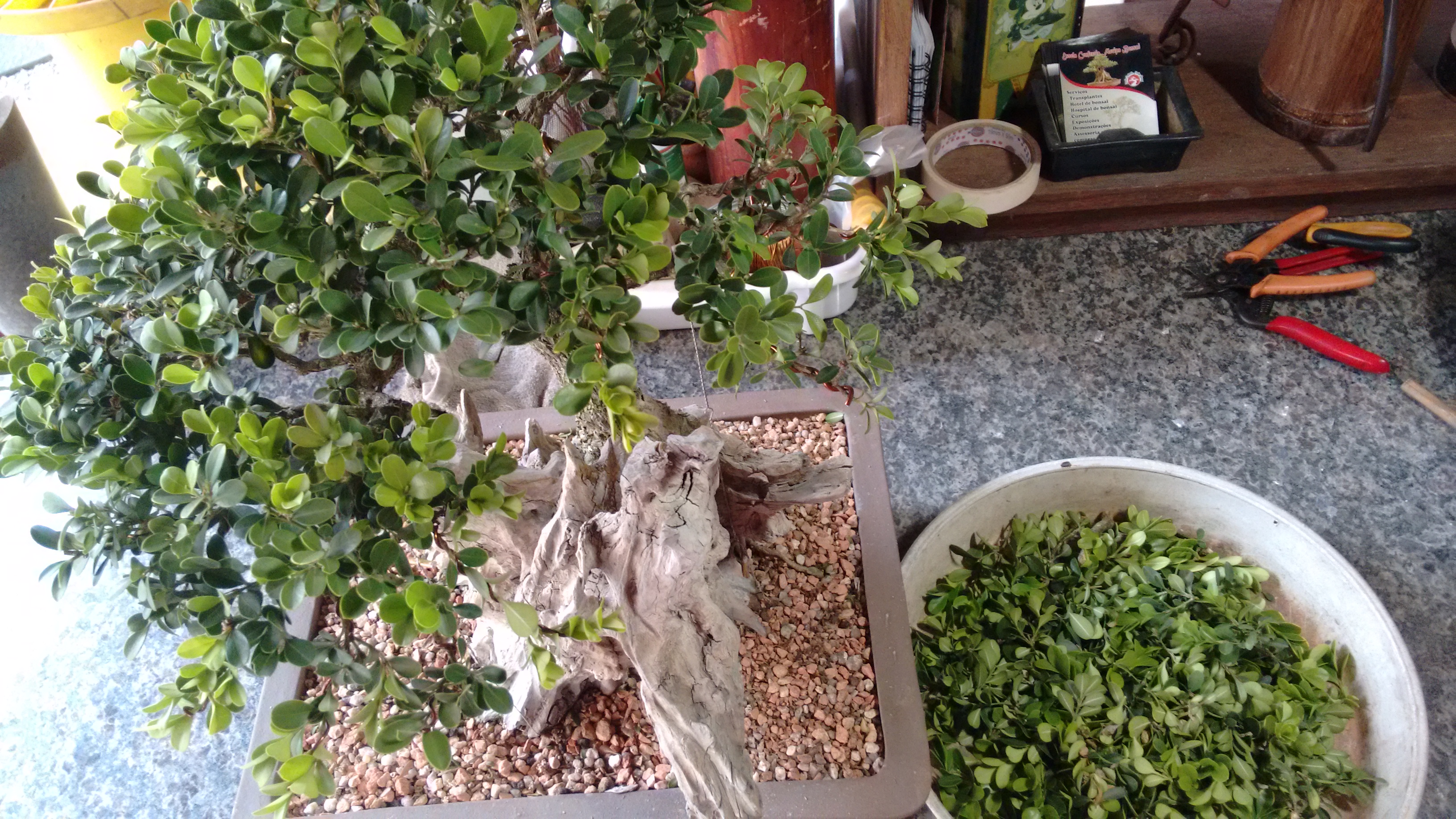 Bonsai de Buxus, uma reestilização necessária. https://www.fabianocostabonsai.com.br/bonsai-de-buxus-uma-reestilizacao-necessaria/ https://www.fabianocostabonsai.com.br/bonsai-de-buxus-uma-reestilizacao-necessaria/#comments Tue, 25 Oct 2016 21:34:20 +0000 http://www.fabianocostabonsai.com.br/?p=1773 Esta planta começou sua história comigo enquanto ainda tinha empresa de paisagismo, foi retirada de um pátio de um mercado no qual dávamos manutenções na jardinagem, estava muito grande e para darmos uma repaginada no local mudamos a espécie, então sobrou um arbusto de uns 2m de diâmetro e mais de 50 anos de chão pra trabalhar como um pré-bonsai e quem sabe um dia chegar a ser um bonsai, infelizmente não tenho fotos da coleta, mas as sequências de fotos desde após a mesma teremos a seguir.
