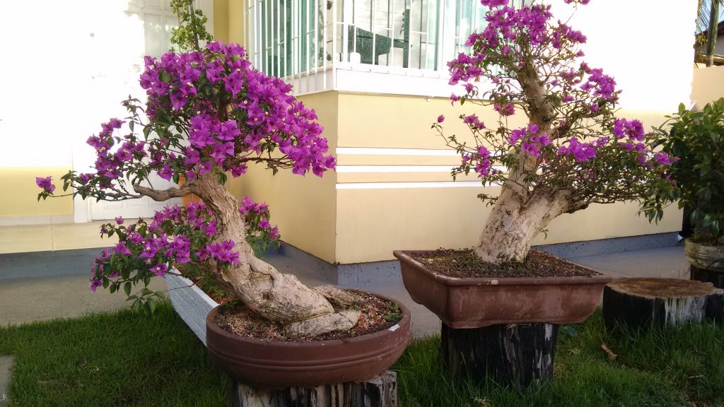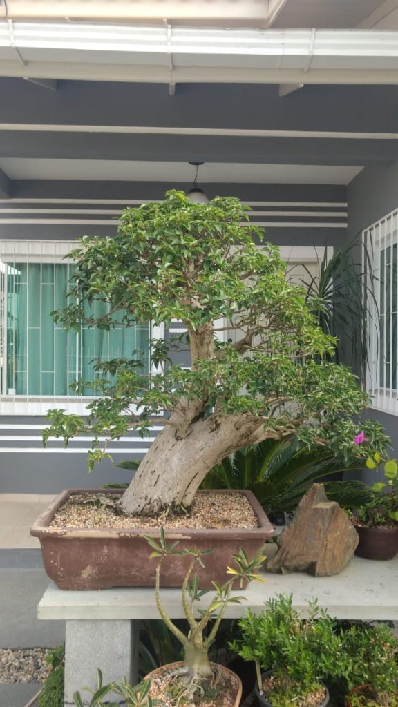 Parei de novo ao lado do novo amigo e educadamente agradeci pela excelente refeição (né?), e comentei fazer parte de uma escola de bonsai e expliquei do que se referia, (vão anotando), daí tive espaço pra comentar sobre a bouganvílea que estava agonizando em seu barranco, engolida pela grama e que por ser um arbusto vigoroso seria uma planta de muita manutenção, e que pra bonsai me serviria muito, quem sabe uma troca? Eu sugeri.