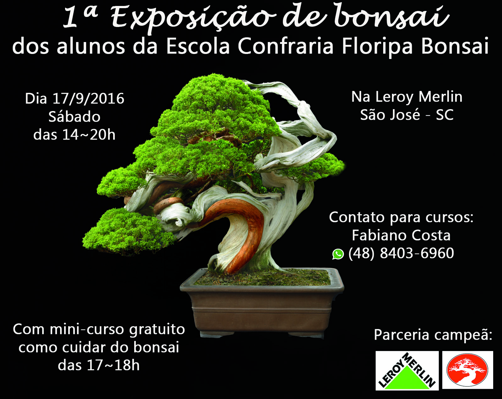 Exposição dos trabalhos dos alunos da Escola Confraria Floripa Bonsai, todos poderão tirar suas dúvidas sobre a arte e votar na planta no qual acharem mais interessante.