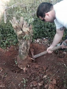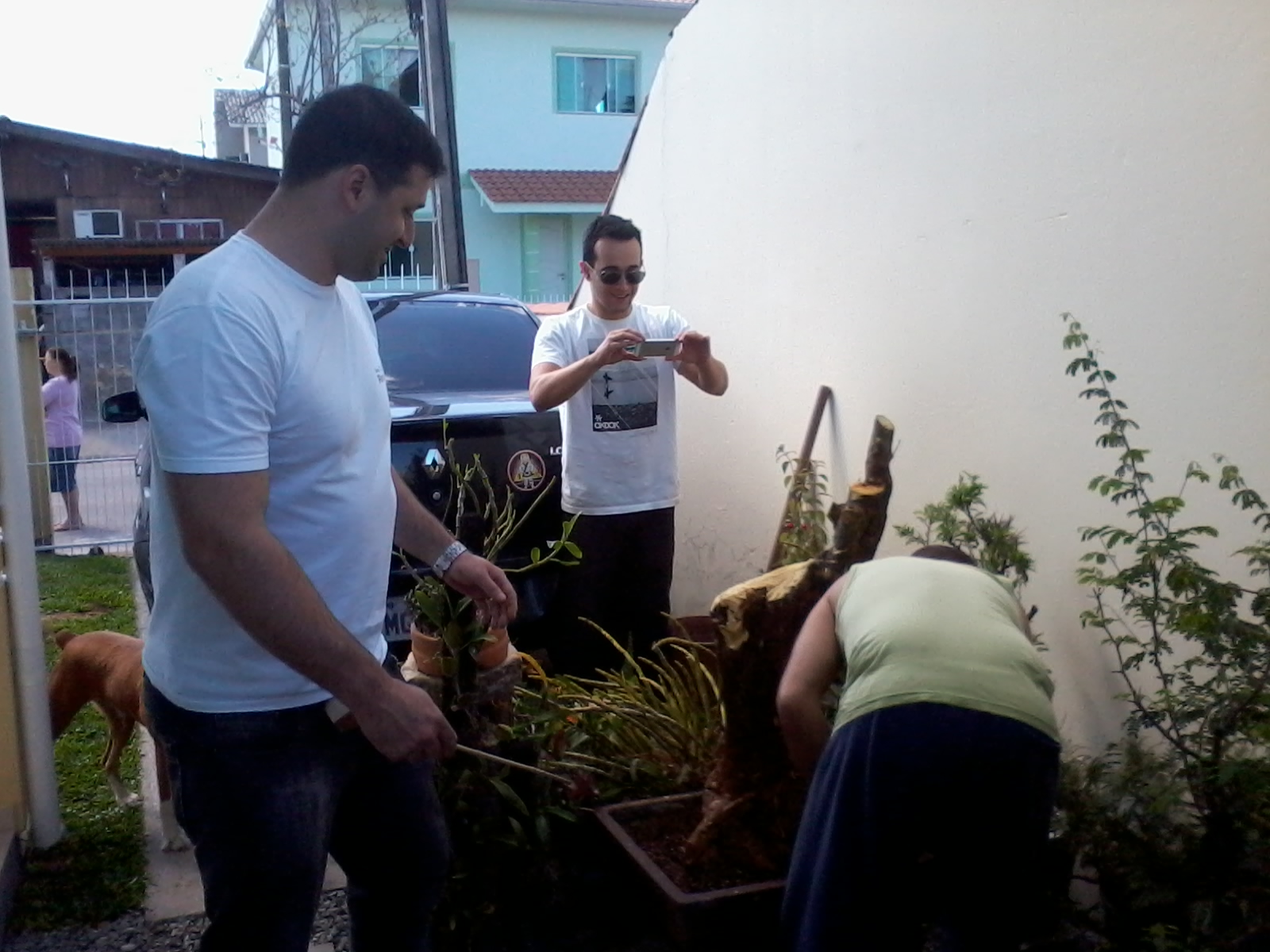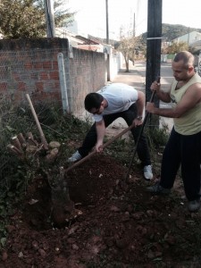 Na semana anterior com tudo marcado e uma chuva no qual nos assolava, acabou meio que dando errado e fomos eu, o Freitas e o Jonas, os guerreiros que me acordaram as seis da matina, no qual já estava marcado, mas pelo tempo ruim quase desistimos e acabou dando um certo desencontro, mas fomos lá armados de enxadão, picareta, serrote, pouca vontade e muito sono…mas fomos, chegando lá a cadelada da vizinhança nos recebeu muito bem, latindo feito loucos, daí como eu só tinha pego autorização de alguns, preferimos voltar na outra semana com mais autorizações, planta pra troca, mais confiança e mais vontade também, e assim quem sabe o Geovani não nos dava o golpe do “acabei dormindo de novo” e comparecia!!