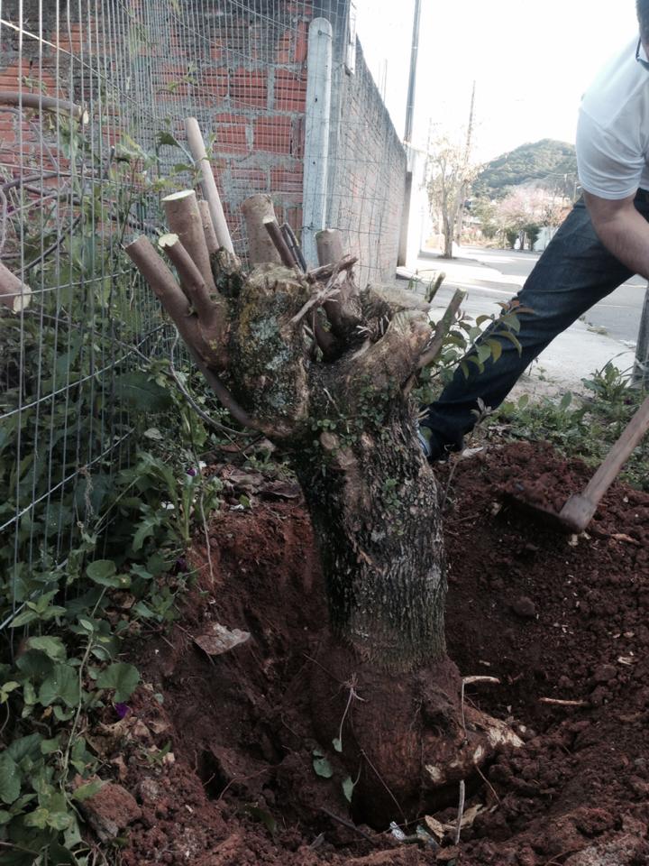 Bem, no mais é isso mesmo, agora estão lá esperando a brotação que na primavera é quase 100% de sucesso, depois é esperar para fazer uma boa ramificação e mais tarde no próximo reenvase ajeitar no ângulo correto no vaso, agradeço aos amigos Marcelão, geovani e François pela força do dia e ao Jonas e Freitas também, creio que essa planta será o símbolo de nossa escola!