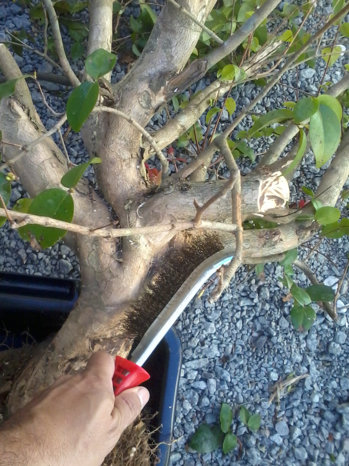 Consegui as tais liberações e falei com o pedreiro da obra ao lado, pedi ajuda e ele retiraria pra mim e já colocaria uma outra que doei em seu lugar, uma pereira com uma copinha mais alta, no qual faria uma sombra mais adequada ao local e daria frutos mais interessantes pois ali em volta é cheio de pitangueiras.