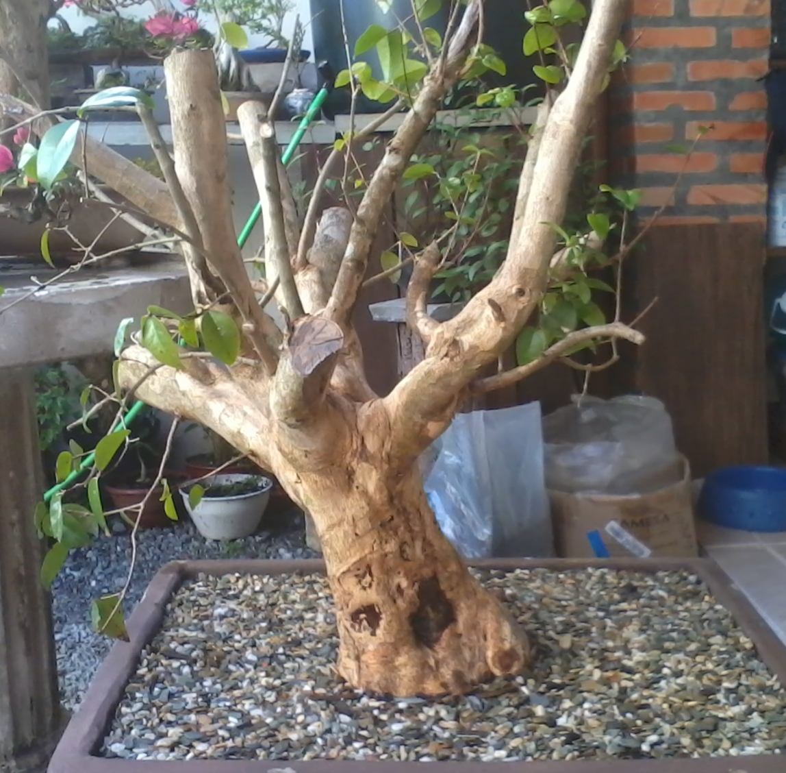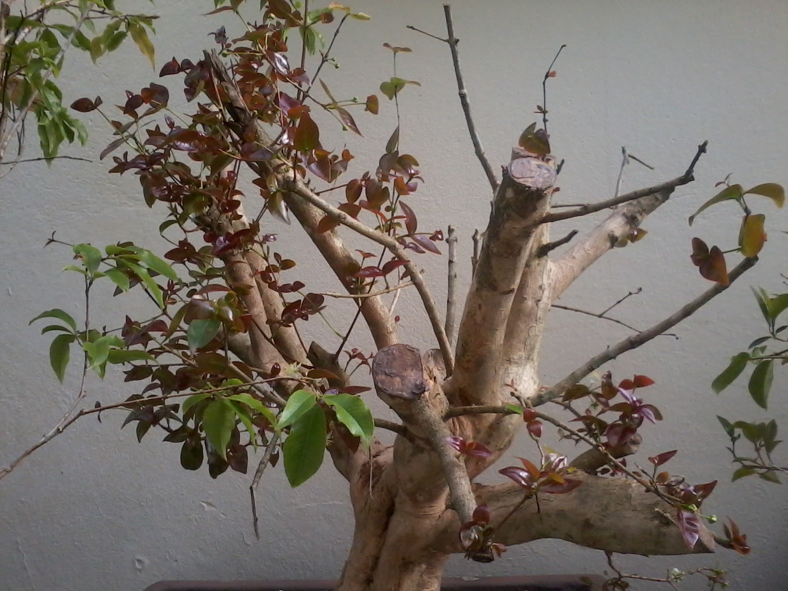 Após várias podas e usando a técnica do corta e deixa crescer, promovendo uma boa ramificação e conicidade de galhos e tronco, além de seguir o caminho mais natural e estilo no qual senti que ela se identificava em questão da espécie, seguem as fotos atualizadas em julho de 2015: