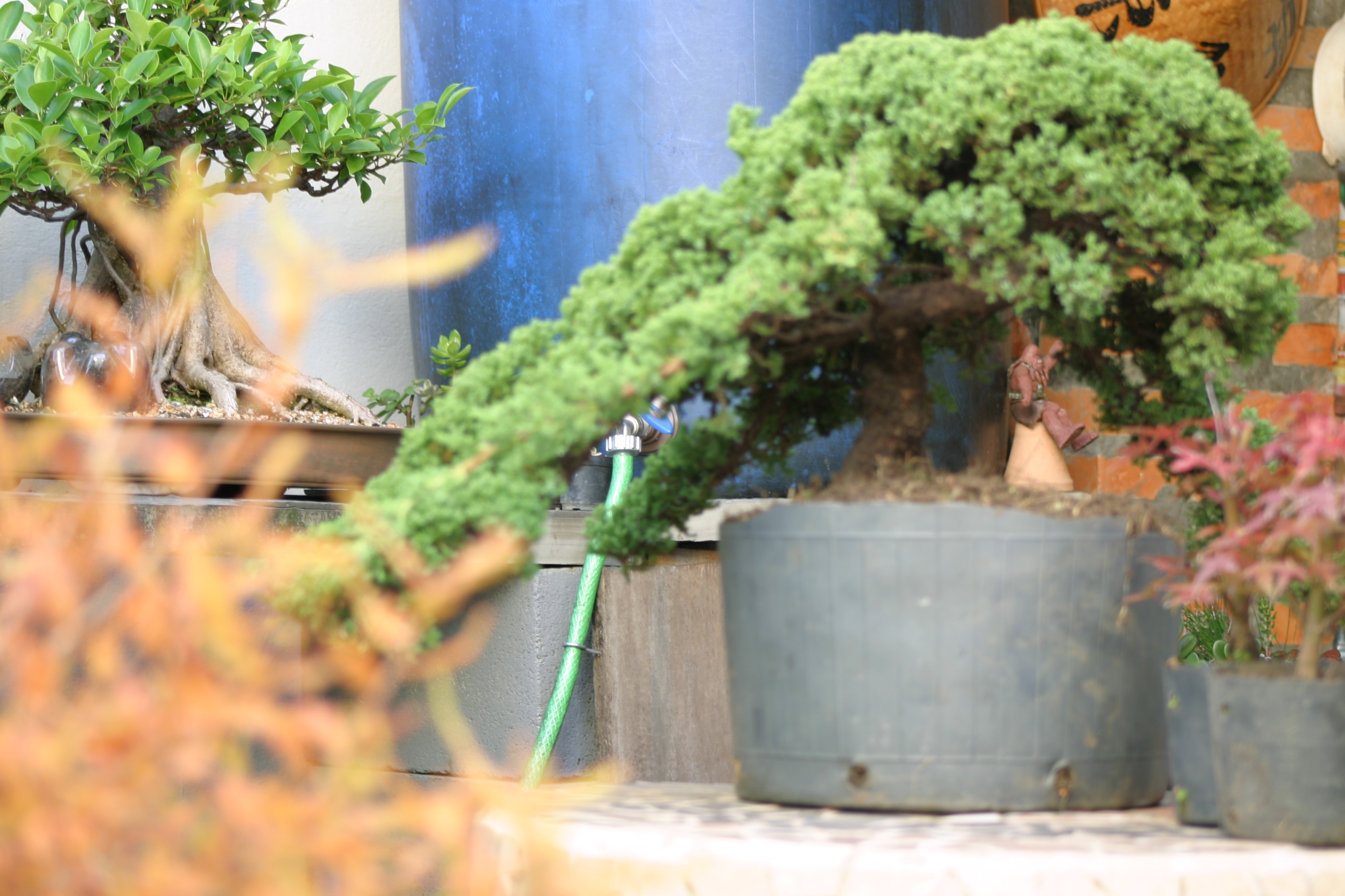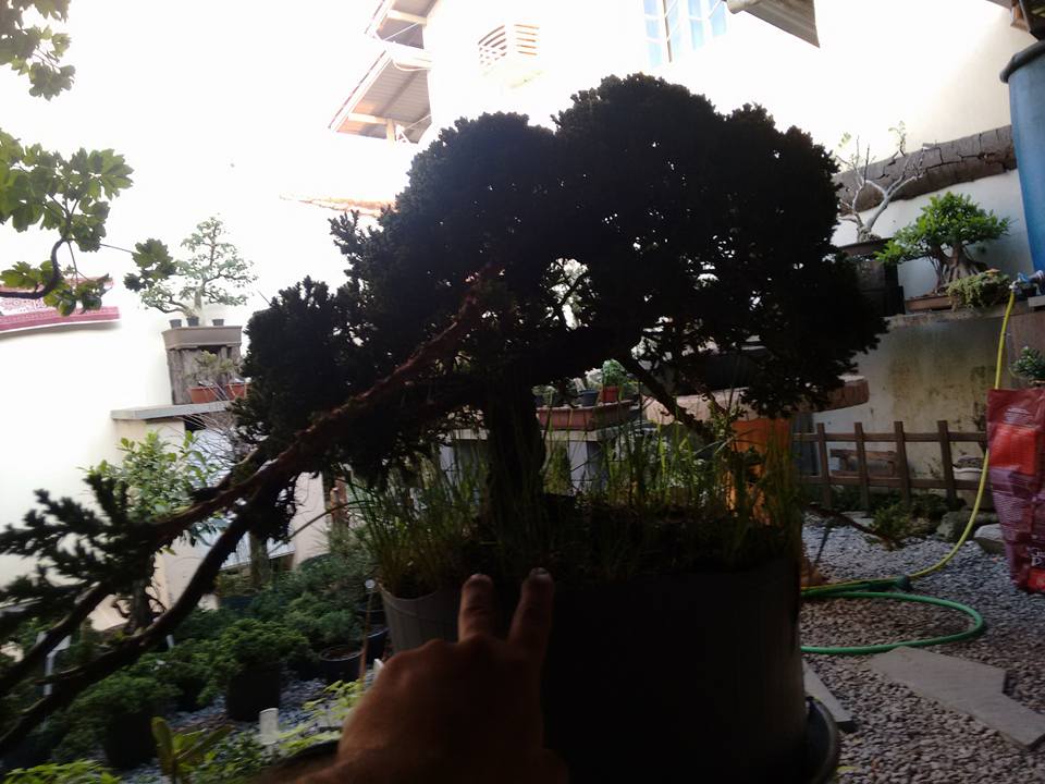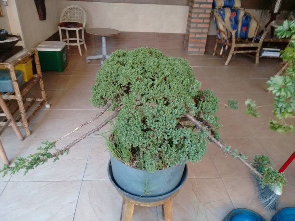 Essa planta é um junípero procumbens, pedi ao fornecedor uma planta no qual fosse como Daniel mesmo dizia “de patrão”, então fomos a procura da mesma e achamos 4 pretendentes na época, mas com certeza essa foi a que mais nos agradou, pela qualidade em questão de movimento de tronco, brotações junto do mesmo, dando a maior possibilidade de compactação de folhagem sem ter que fazer o tal “guru-guru”, a saúde da planta também contou muito, muita opção de estilização por esses fatores.