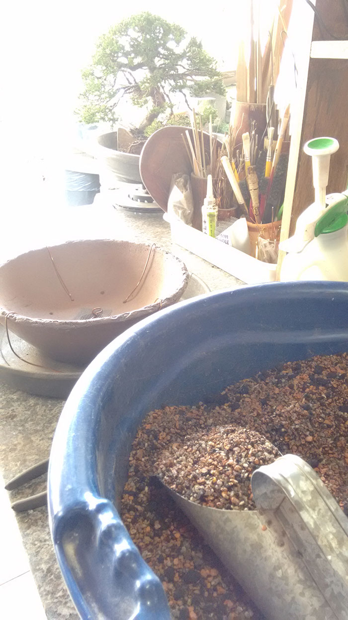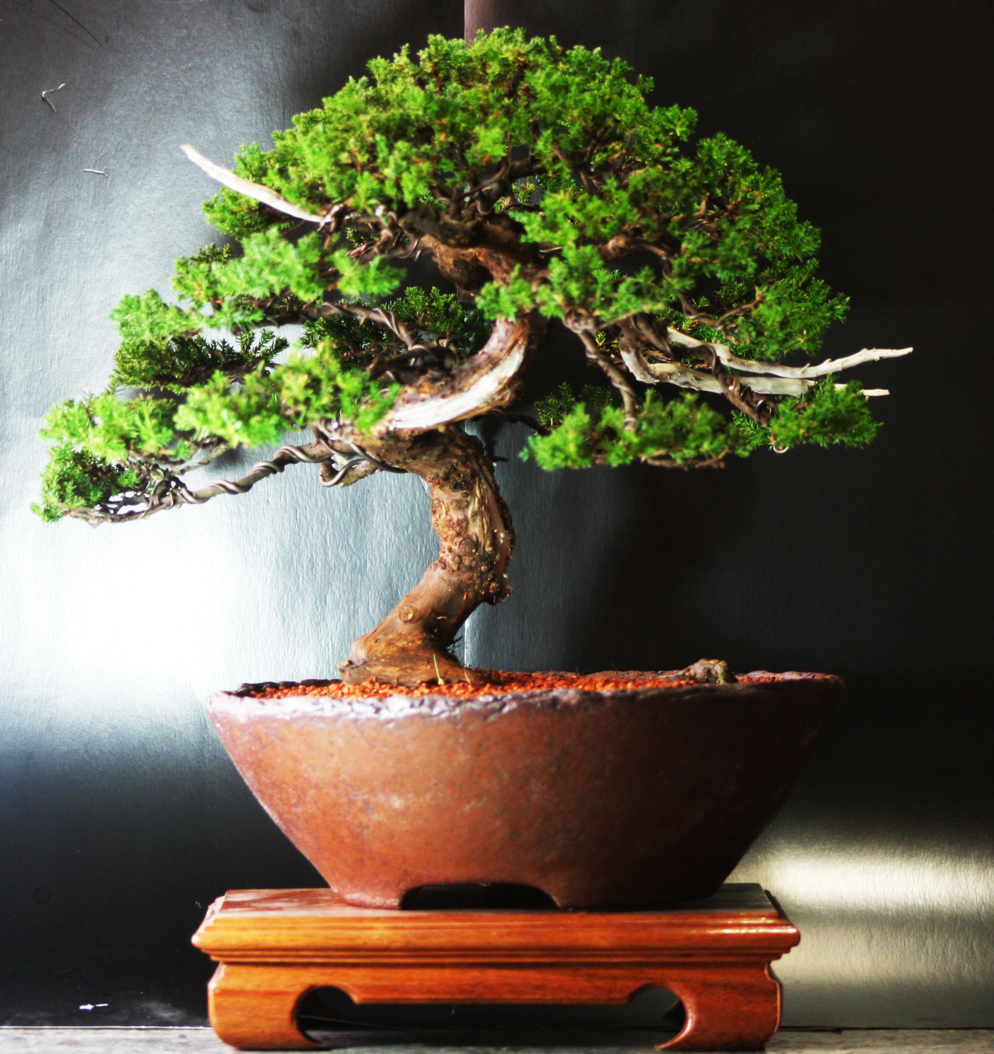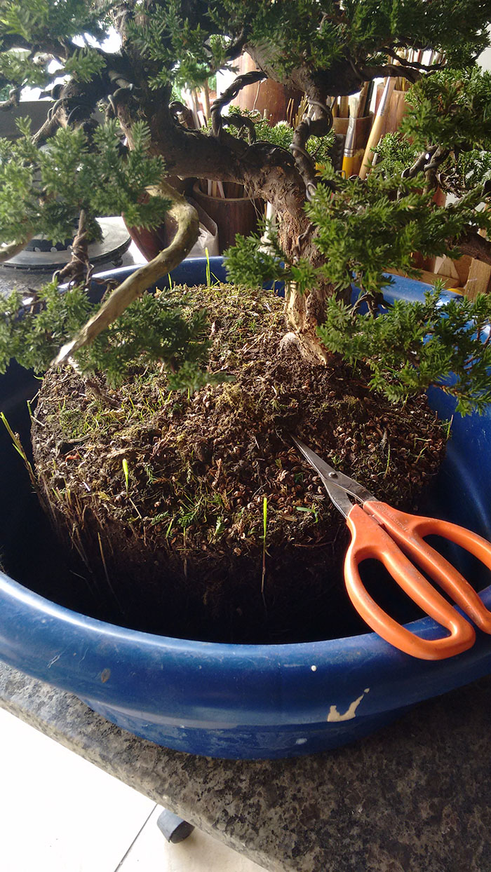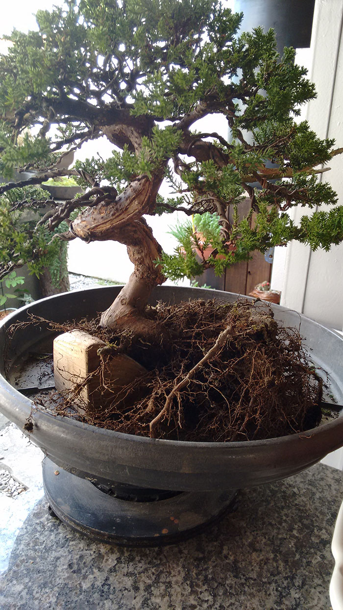 A madeira morta bem sutil, alguns detalhes apenas, pois Daniel não gosta muito, porém eu insisti que juníperos ficam muito interessantes com jin e shari, pois dão mais identidade ao bonsai, no meu ver.