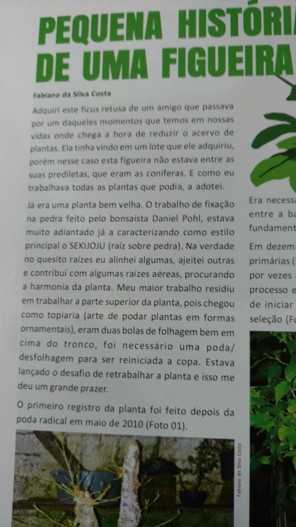 Antes de mais nada já agradecendo ao Bergson pelo convite de escrever uma matéria na segunda edição, onde mostrei o caminho percorrido pela minha figueira microcarpa ishitsuki, até o Rafa participou de coadjuvante, ficou muito legal.